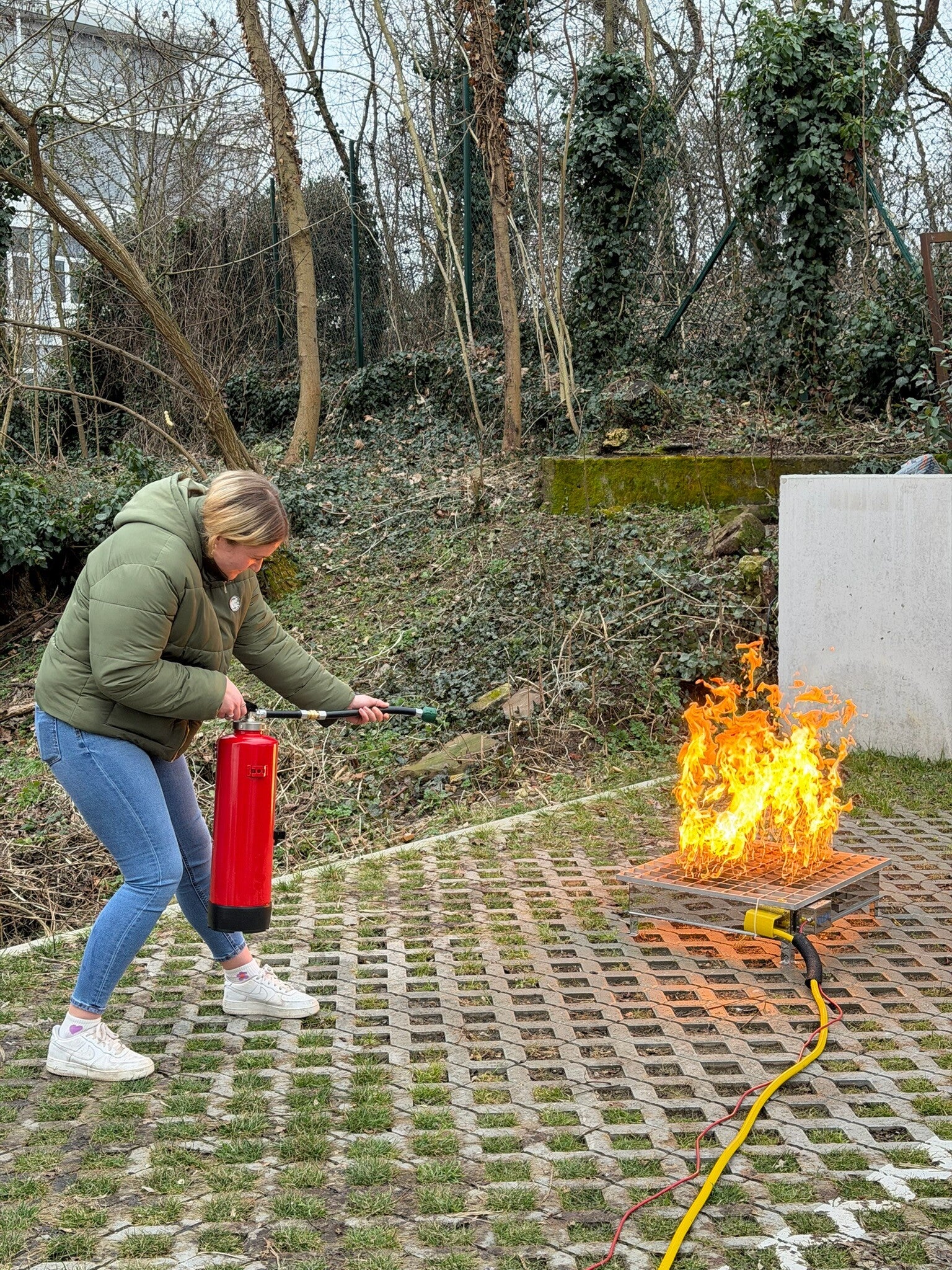 Aufgrund rechtlicher Vorgaben müssen wir bei der Erstausbildung die Brandbekämpfung zusätzlich an einer Gas befeuerten Anlage durchführen. Hierfür nutzen wir eine mobile Anlage. So ist der Betrieb an jedem Ort möglich.