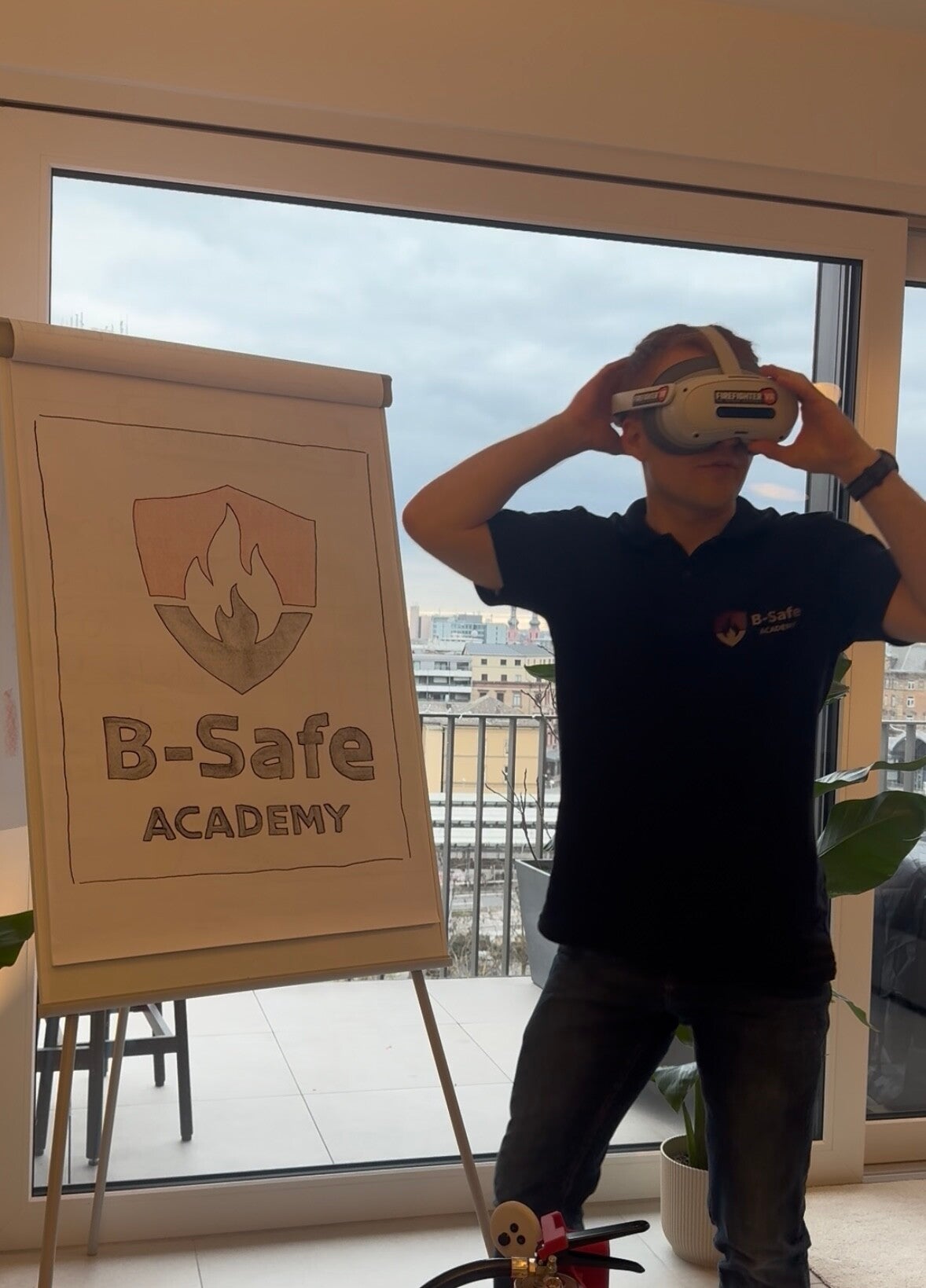 Nach einer Löschübung wechseln wir auf das moderne VR-Equipment. Durch diese beiden Komponenten bietet die B-Safe Academy Ihnen die bestmögliche Ausbildung.